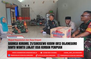 BOJONEGORO, – Wujud kepedulian dan rasa empati ditunjukkan oleh jajaran TNI Koramil 21/Sukosewu Kodim 0813 Bojonegoro Jawa Timur terhadap