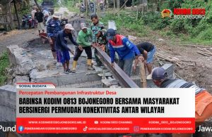 Permudah Distribusi Material Pembangunan Jembatan, Babinsa Kepohbaru Bojonegoro dan Warga Dusun Bakalan Gotong Royong Perbaiki Jalan