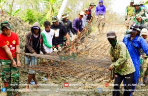 Salah satunya, di Dusun Sekonang, Desa Soko, Kecamatan Temayang, puluhan prajurit TNI dan warga bahu-membahu mengangkat rangka besi untuk pengerjaan rehabilitasi check dam yang menjadi salah satu prioritas pembangunan program TMMD ke- 125 tahun ini.