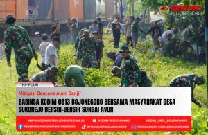 BOJONEGORO, – Bersama masyarakat Desa Sukorejo, jajaran Bintara Pembina Desa (Babinsa) Koramil 01/Bojonegoro Kodim 0813 Bojonegoro Jawa Timur, melaksanakan kegiatan karya bakti dalam rangka mitigasi bencana dengan sasaran pembersihan sungai dan lingkungan sekitar, Selasa (20/1/2026).