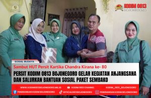 BOJONEGORO, –      Persit Kartika Chandra Kirana (KCK) Cabang XXVIII Kodim 0813 Bojonegoro, melaksanakan kegiatan anjangsana kepada Anak Berkebutuhan Khusus (ABK) dan Keluarga Besar TNI (KBT) yang sedang sakit. Pada kegiatan itu, anggota Persit KCK Cabang XXVIII Kodim 0813 Bojonegoro juga memberikan bantuan sosial berupa 30 paket sembako kepada warga kurang mampu, dan tali asih untuk anak yatim.