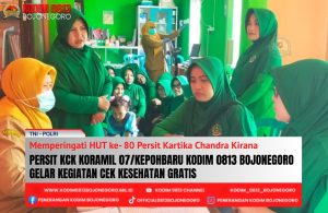 BOJONEGORO, – Dalam rangka memperingati Hari Ulang Tahun (HUT) ke- 80 Persit Kartika Chandra Kirana (KCK) tahun 2026, Persit KCK Ranting 08 Koramil 07/Kepohbaru Kodim 0813 Bojonegoro gelar kegiatan cek kesehatan gratis bagi anggota TNI dan Persit.