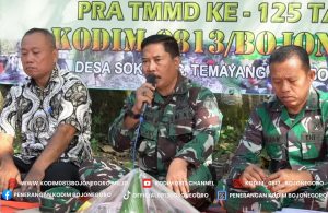 Sebelum dilaksanakannya program yang mengusung tema ‘Dengan Semangat TMMD Mewujudkan Pemerataan Pembangunan Berkelanjutan dan Ketahanan Nasional di Wilayah’ jajaran TNI Kodim 0813 Bojonegoro menggelar kegiatan Pra- TMMD di Desa Soko Kecamatan Temayang Kabupaten Bojonegoro.