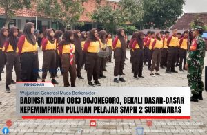 BOJONEGORO, – Dalam rangka mewujudkan generasi muda berkarakter, Bintara Pembina Desa atau Babinsa Koramil 04/Sugihwaras Kodim 0813 Bojonegoro turut menghadiri kegiatan Latihan Dasar Kepemimpinan Siswa (LDKS) di SMP Negeri 2 Sugihwaras Kabupaten Bojonegoro Jawa Timur.