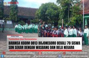 Puluhan Siswa SD dibekali Wasbang dan Bela Negara oleh Babinsa Sekar Bojonegoro
