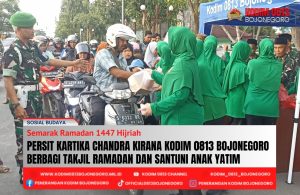 BOJONEGORO, – Dalam semangat kebersamaan dan kepedulian di bulan suci Ramadan, jajaran Persit Kartika Chandra Kirana (KCK) Cabang XXVIII Kodim 0813 Bojonegoro menjadikan bulan yang penuh keberkahan menjadi momen istimewa untuk berbagi kebaikan kepada sesama dengan membagikan ratusan takjil untuk masyarakat dan pengguna jalan.