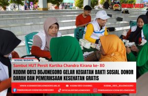 BOJONEGORO, –    Komando Distrik Militer (Kodim) 0813 Bojonegoro Kembali menggelar kegiatan bakti sosial Kesehatan berupa donor darah dan pemeriksaaan kesehatan gratis di Alun-alun Kota Bojonegoro. Kegiatan ini digelar dalam rangka memperingati Hari Ulang Tahun (HUT) ke- 80 Persit Kartika Chandra Kirana (KCK), Minggu (8/2/2026).